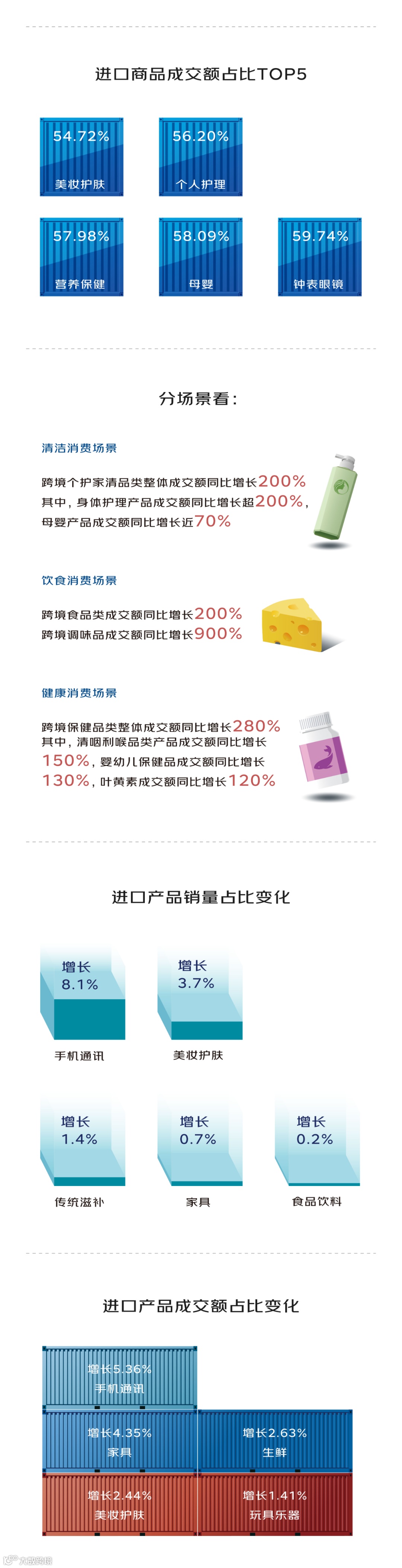近年来,我国进口市场持续扩大,越来越多的进口商品借助联通国内和海外市场的供应链体系进入中国市场,满足了消费者更多样、更高品质的消费需求,并与国产商品形成互补,相互促进,进一步激活了国内消费市场的活力和潜力。