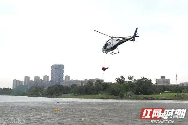 冲锋舟水面搜救和转移被困群众、直升机索降救援、消防救援艇救援和封堵管涌、构筑子堤……随着指挥员一声令下,救援直升机编队行进、冲锋舟编队行进、侦查救援无人机编队行进、消防救援艇编队行进等演练项目相继展开。各环节井然有序,处置得当,参演人员娴熟的操作和高效的救援,赢得现场观众一片喝彩。