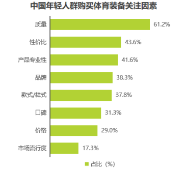 《白皮书》显示,大多数年轻人认为,对专业性的追求能够代表自己对生活的态度和运动理念,是彰显自我能力的一种方式。所以,他们对运动持有专业态度,讲求科学运动。这种追求专业的运动理念直接反映在年轻人运动消费上,主要呈现在如下三个方面:大量收集和学习专业知识、积极购买专业装备、愿意参加专业系统的培训指导课程。其中,购买专业装备,更是年轻人体育消费的重中之重,质量、性价比、产品的专业性是年轻人最看重的三个因素。越来越多的年轻人愿意花费更多生活预算,用以满足更具专业性的运动需求。数据显示,超9成年轻人装备年均花费过千元。