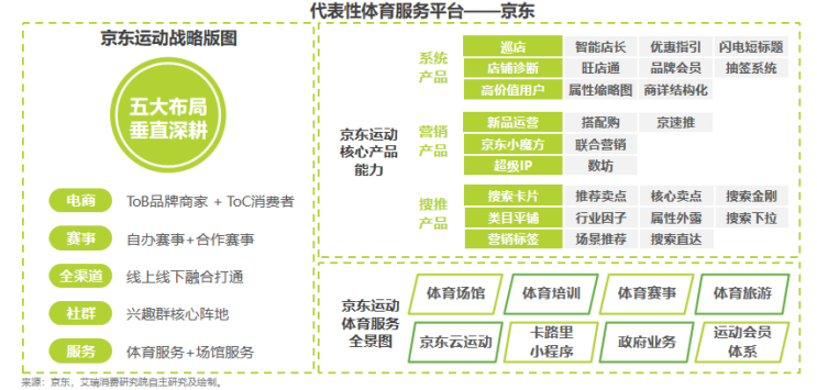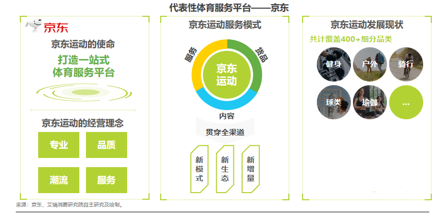 京东运动是目前一站式平台缔造体育消费新生态的代表,集合各类体育产品和服务,为企业和商家提供专业化的、集中的展示窗口,精准触达运动消费群体;并为用户提供垂直的、集中的、专业的一站式体育产品/服务,更通过依靠平台上海量产品、品牌及商家,结合大量来自用户的真实评价与对比,给予消费者多样化、合理化、专业化的购买建议,进一步缩短用户购买链路。