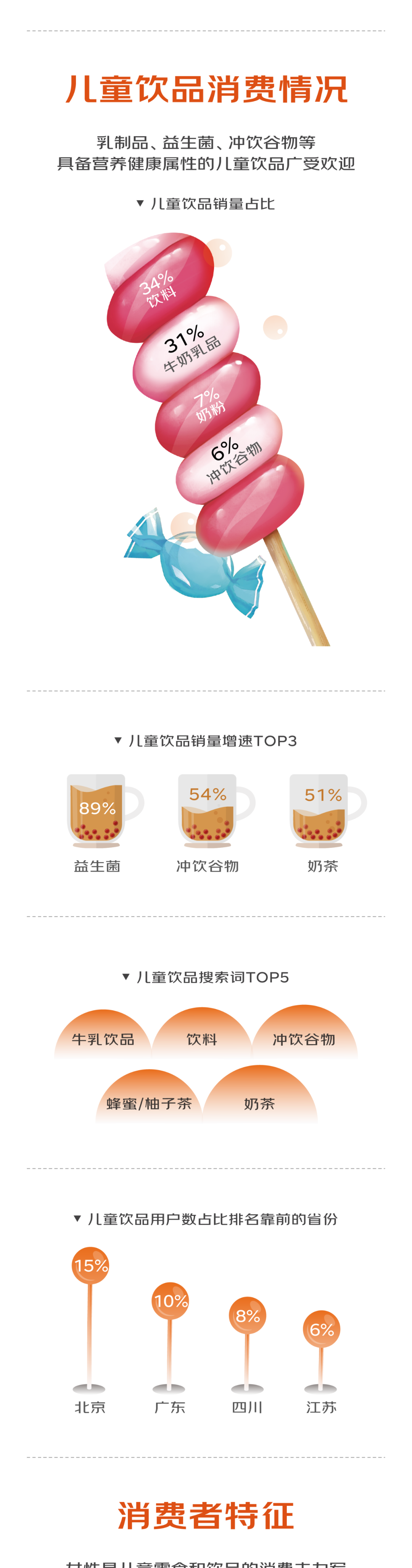 同时,年轻家长对食品健康的认知也变得更加科学和理性。数据显示,乳制品、益生菌、冲饮谷物等具备营养健康属性的儿童饮品持续热销。从消费趋势来看,中国家长已经把乳制品作为孩子摄入高质量蛋白质的重要来源。中国乳品企业持续创新,如用舒化乳适应部分中国消费者乳糖不耐受的问题,用常温酸奶解决不便冷藏的问题等。未来,乳制品在儿童饮品市场上的地位会越来越稳固。