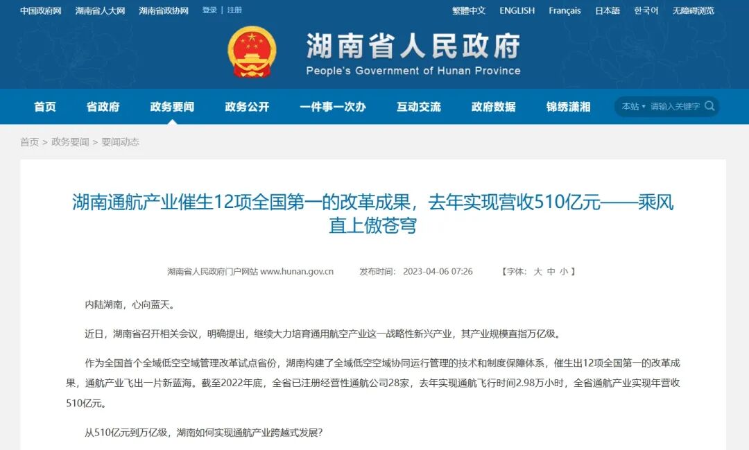 基于良好的产业基础,2020年9月,湖南成为全国第一个全域低空空域管理改革试点省份,一系列改革措施全面铺开——