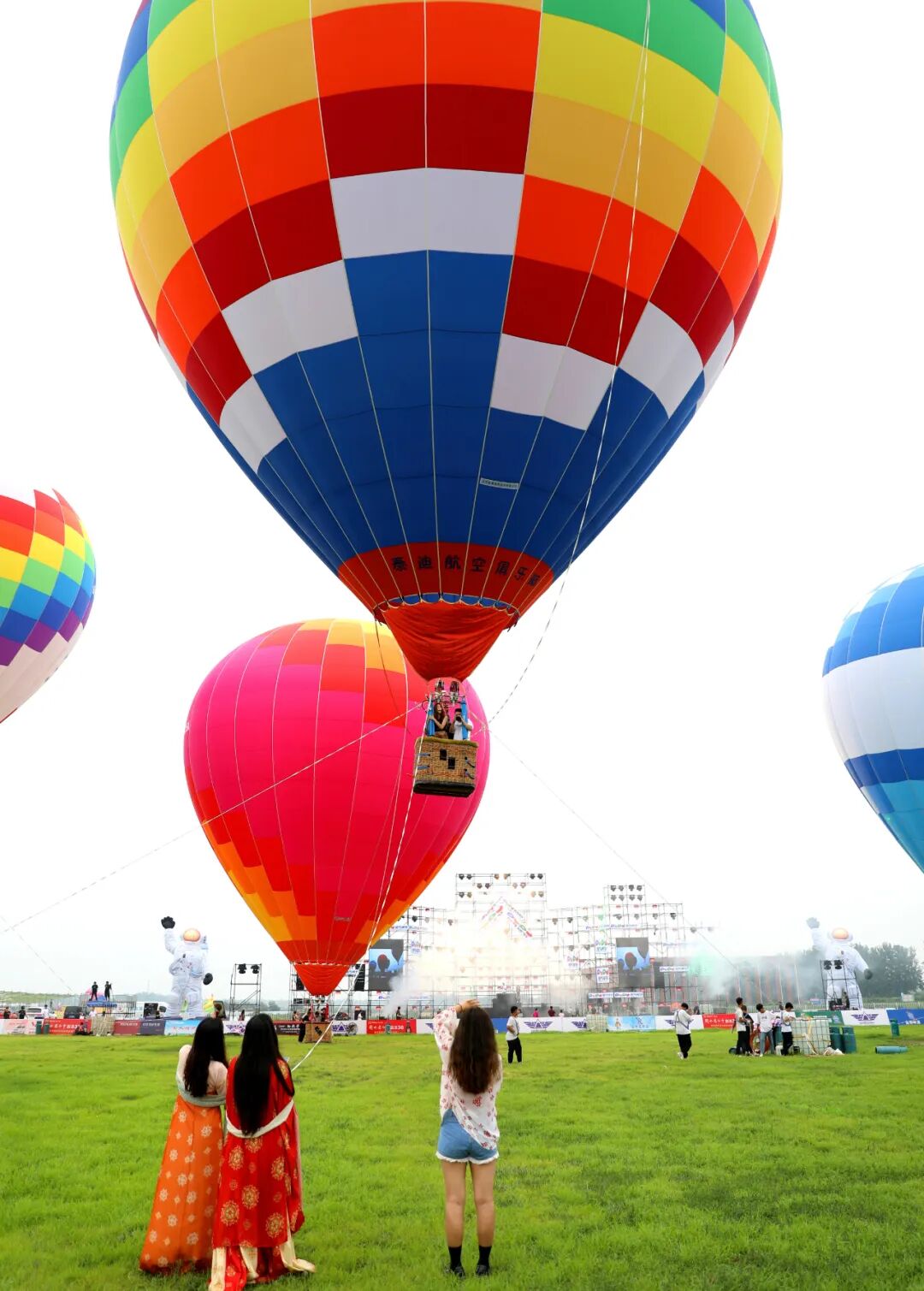 在衡水航空飞行营地举办的热气球展吸引了游客观赏。