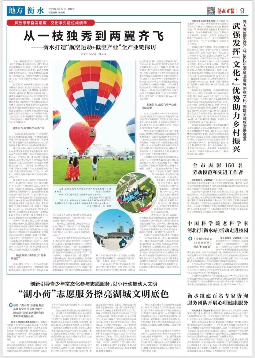 如今,北航(衡水)中小型无人机和临近空间飞行器生产与测试综合基地项目的启动区(智能制造园)正在加紧建设,中小型无人机航电系统、发动机测试等项目具备入驻条件。启动区建成投产后,预计3年内可实现年产值50亿元以上。