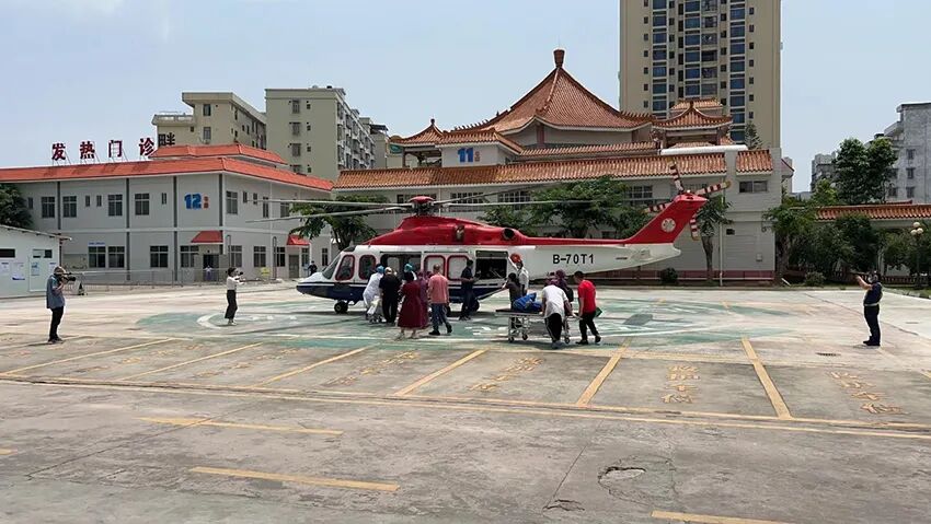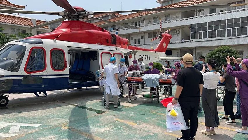 据悉,患者是一名46岁男性,因重度肺炎合并慢性充血性心力衰竭,在高州市人民医院接受监护治疗,病情危重,需紧急转院至广州医科大学附属第一医院国家呼吸医学中心。两家医院相隔340多公里,路面通畅的情况下,也至少需要4个小时的车程,本次直升机低空转运仅用了70分钟左右,使得患者在这场争分夺秒的生命赛跑顺利完成“空中接力”,为其赢得了宝贵的救治时间。