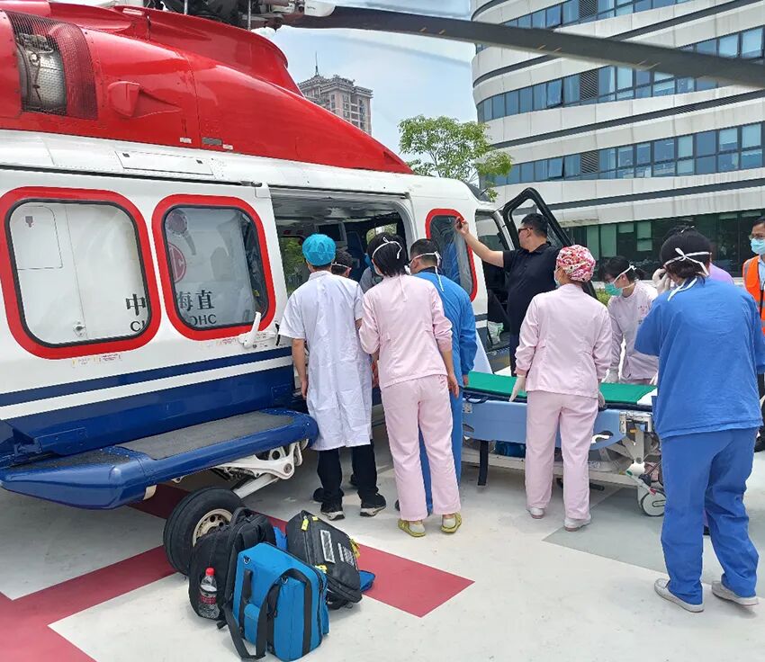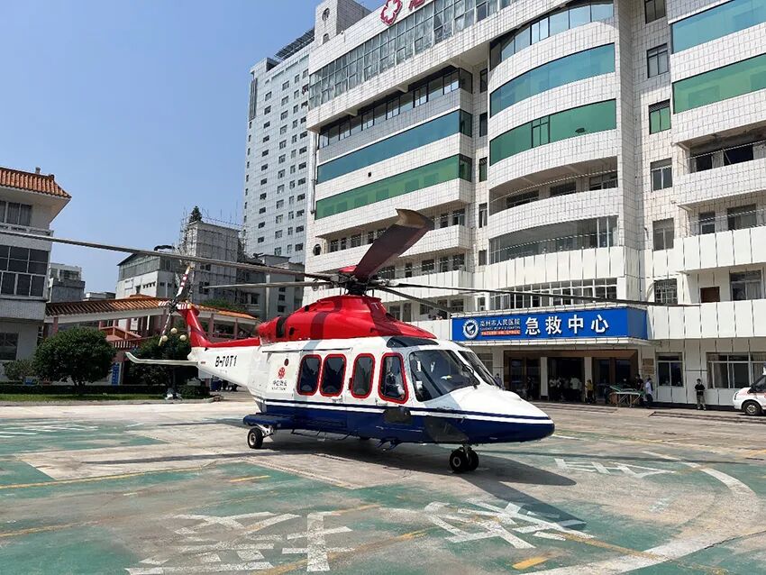 5月18日中午12时45分,伴着阵阵螺旋桨的轰鸣声,中信海直AW139型直升机B-70T1平稳降落至广州医科大学附属第一医院国家呼吸医学中心大坦沙院区的停机坪。中信海直与时间赛跑,340多公里,历时70分钟,将一名ECMO危重症患者从高州人民医院空中转运到广州治疗,顺利完成了一场空中“生命接力”。