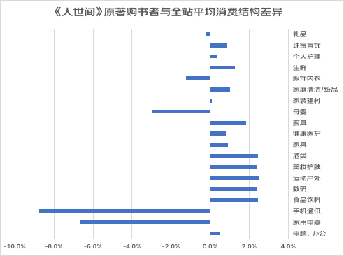 除图书外,他们与全站平均消费结构的差异: