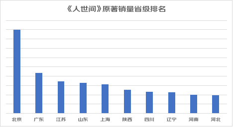 在省级区域中,北京市排名全国第一,在一定程度上说明北京读者对中国社会发展的“光荣与梦想”以及改革开放进程的艰难和复杂有着深刻的共鸣。北京的销量超过第二名广东以其后各省份100%以上。