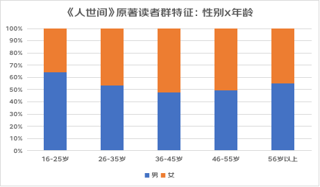 上图可见,读者群体中36-45岁人群占比超过40%,这比京东整体用户的平均年龄要大5-10岁,而且已婚人士占比近85%、男女占比基本各半,说明这确实是一部不分年龄、但更适合有一定生活阅历者阅读的作品。