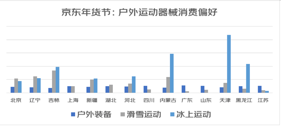 据京东销售情况,年货节以来,冰雪运动相关品类更是成为最热销的“新年货”,成交金额同比增长135%。其中,冰雪器材成交金额同比增长107%,冰雪运动服装同比增长99%,冰雪运动护具同比增长41%。