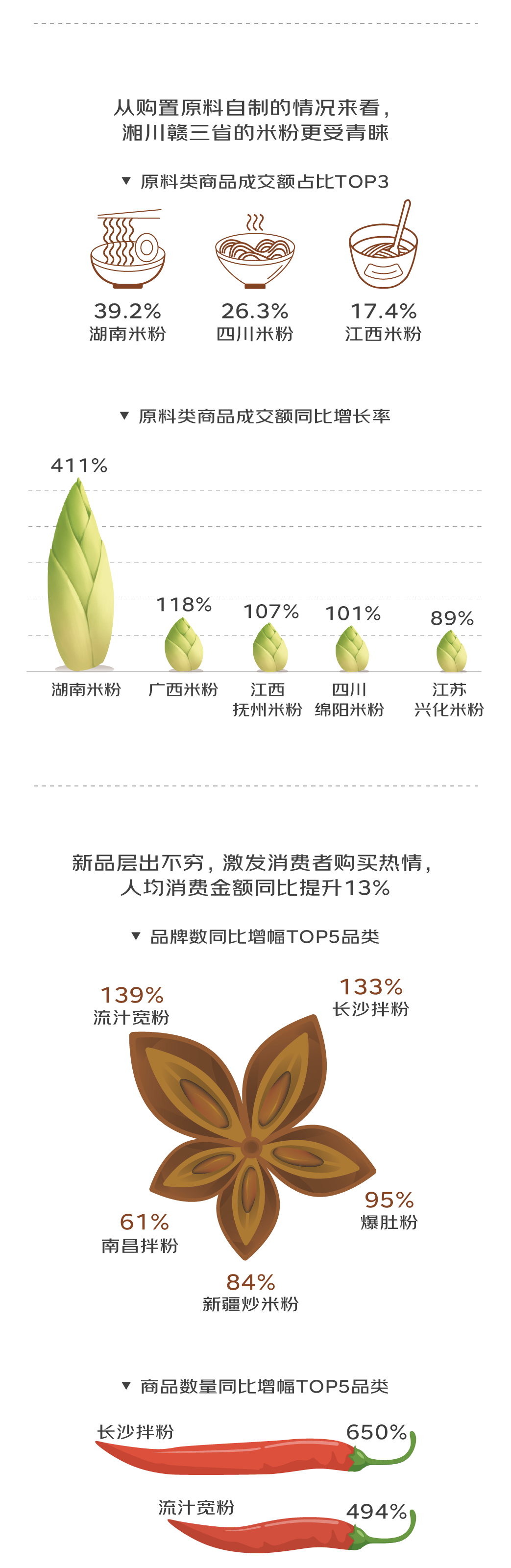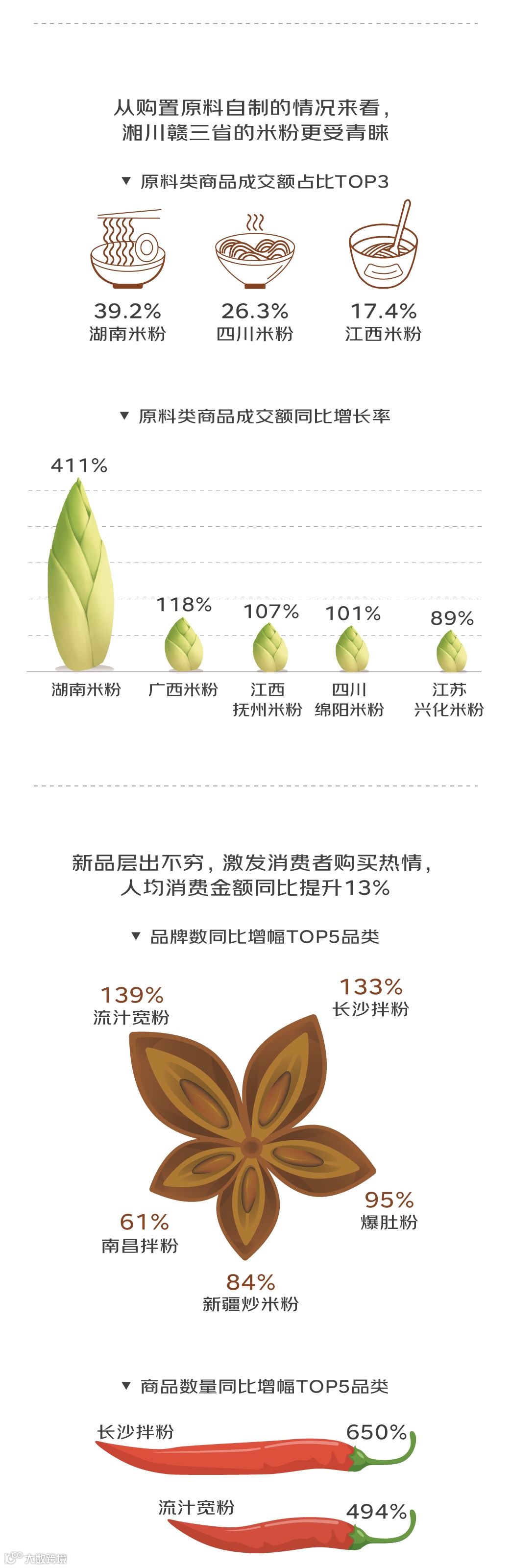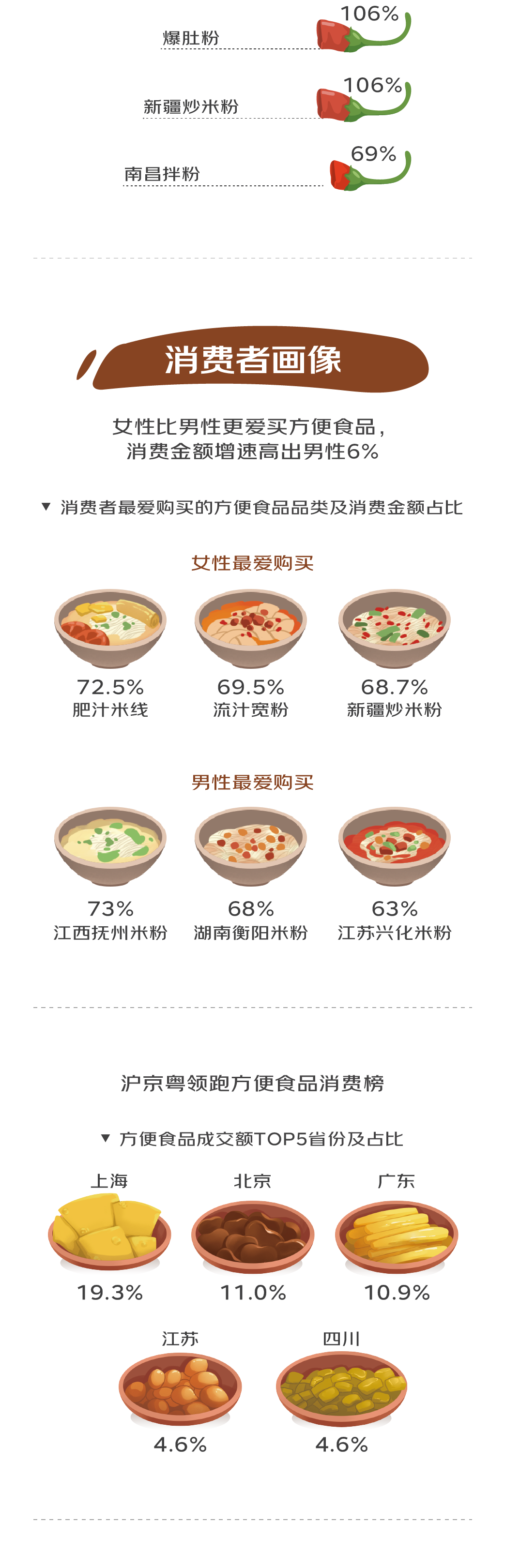 随着生活节奏加快,以及宅经济、懒人经济越发火热,方便食品凭借简单、快捷等特点获得了消费者青睐。但传统方便食品已经难以满足消费者足不出户吃遍各地美食的需求,更多新型速食不断涌现。其中,米粉类产品正快速成为消费者心头好,丰富了速食行业的种类。
