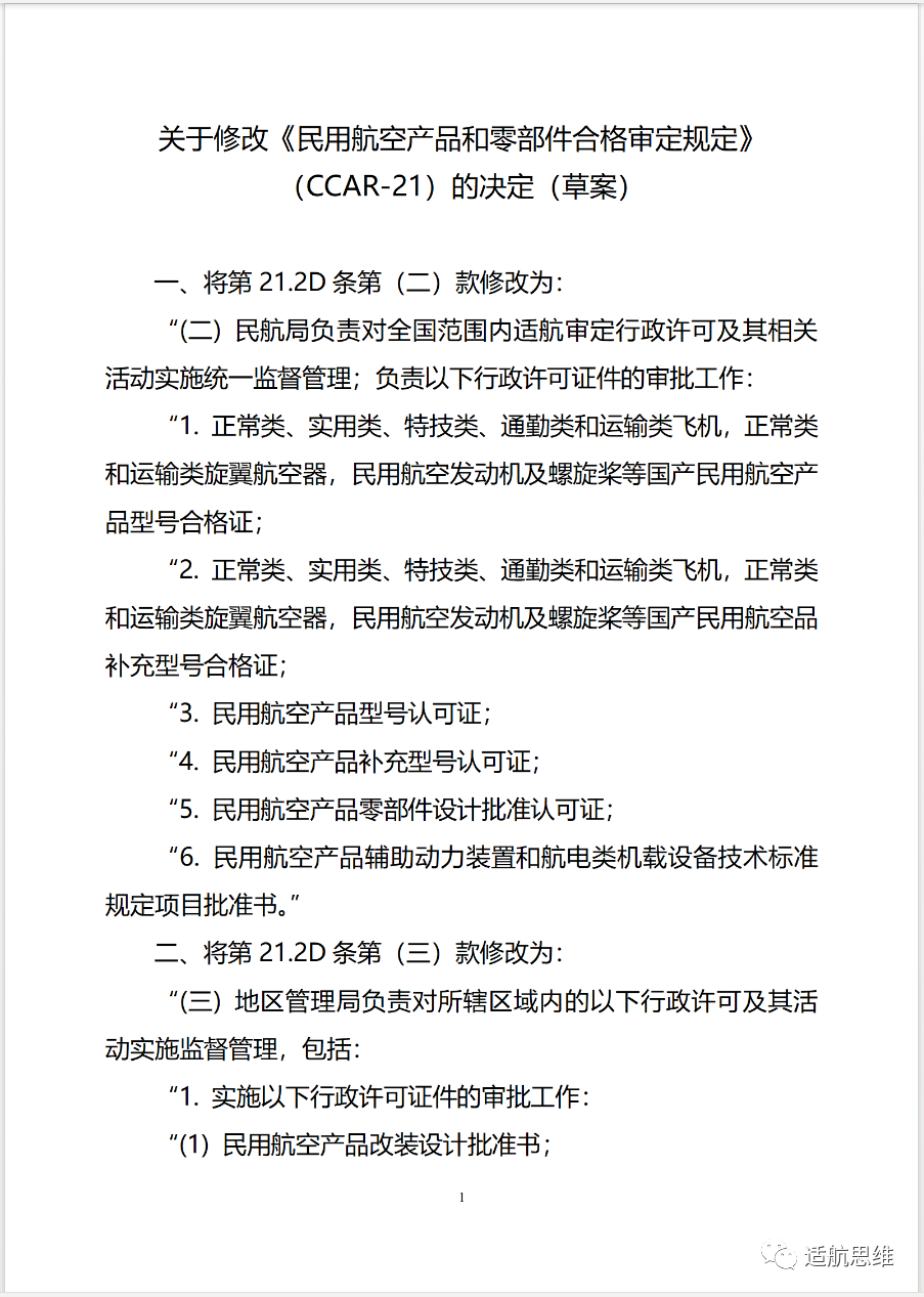 可以看出,本次修订内容非常简单,仅涉及CCAR-21-R4第21.2D条的(二)、(三)款,有关合格审定职责。
