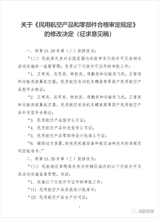 其实早在2022年4月2日,民航局官网就发布过《关于对《民用航空产品和零部件合格审定规定》修改决定草案征求意见的通知》,拟对21.2D条款进行修订,当时的征求意见稿如下: