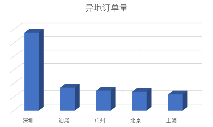 七夕节期间,全国异地订单量(发送给非常用地址所在城市的订单)飙升,京东消费显示,深圳、汕尾、广州市成为异地订单量占比TOP3城市。