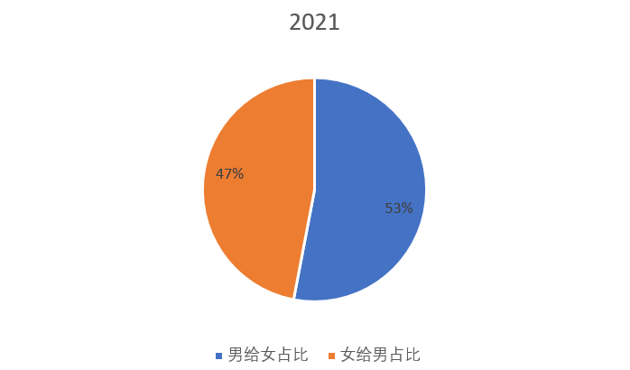 2020年男生给女生买礼物占比71%,女生给男生买礼物占比29%。但是到了2021年,彼此送礼的比例几乎持平。女生们的节日仪式感也不仅是收到礼物,也会精心准备礼物给自己的另一半。