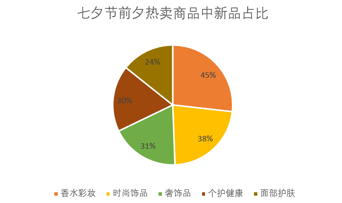 七夕礼盒、口红、项链、香水、红酒等成为最受欢迎的七夕节礼物,24日七夕活动开始截至29日,京东新百货口红成交额同比增长103%,黄金首饰同比增长280%、时尚表增长400%、时尚饰品同比增长120%、香薰同比增长120%,京东超市的红酒成交额同比增长131%。