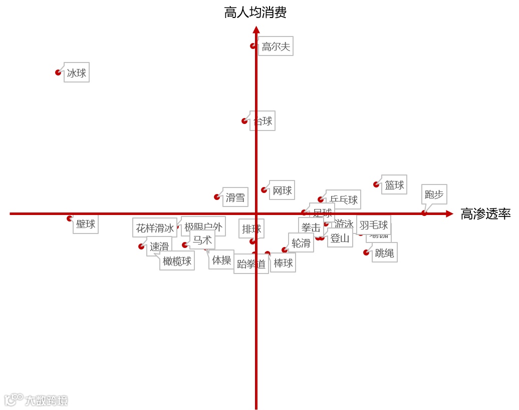 (2)群众基础是关键:运动渗透率越高,消费规模越大