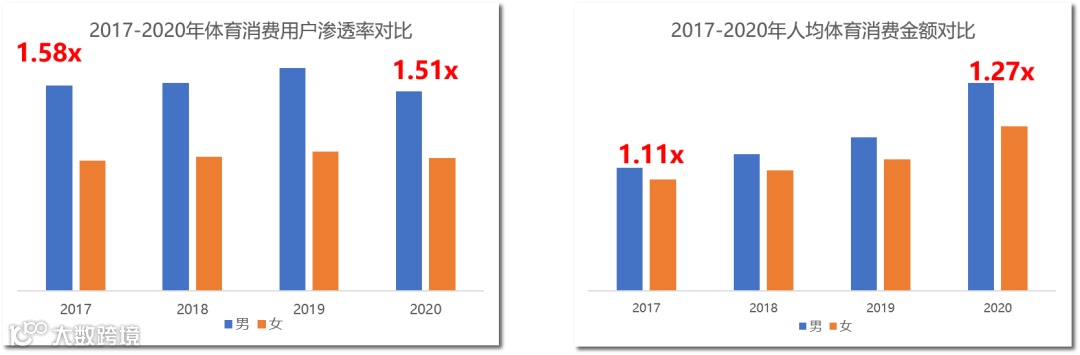 (3)男性更具体育消费热情,女性渗透率和人均消费有提升空间