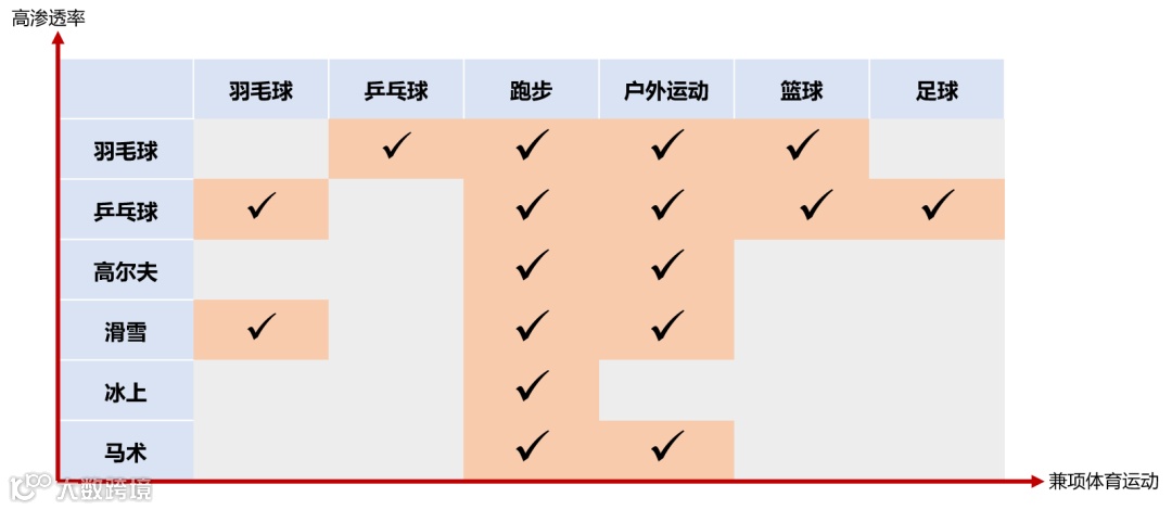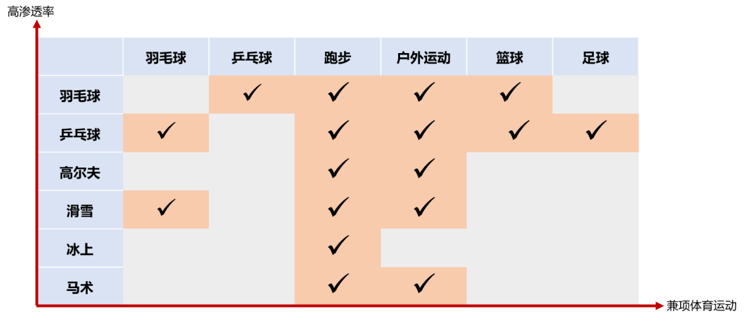 (3)群众基础是关键:运动渗透率越高,兼项消费越多