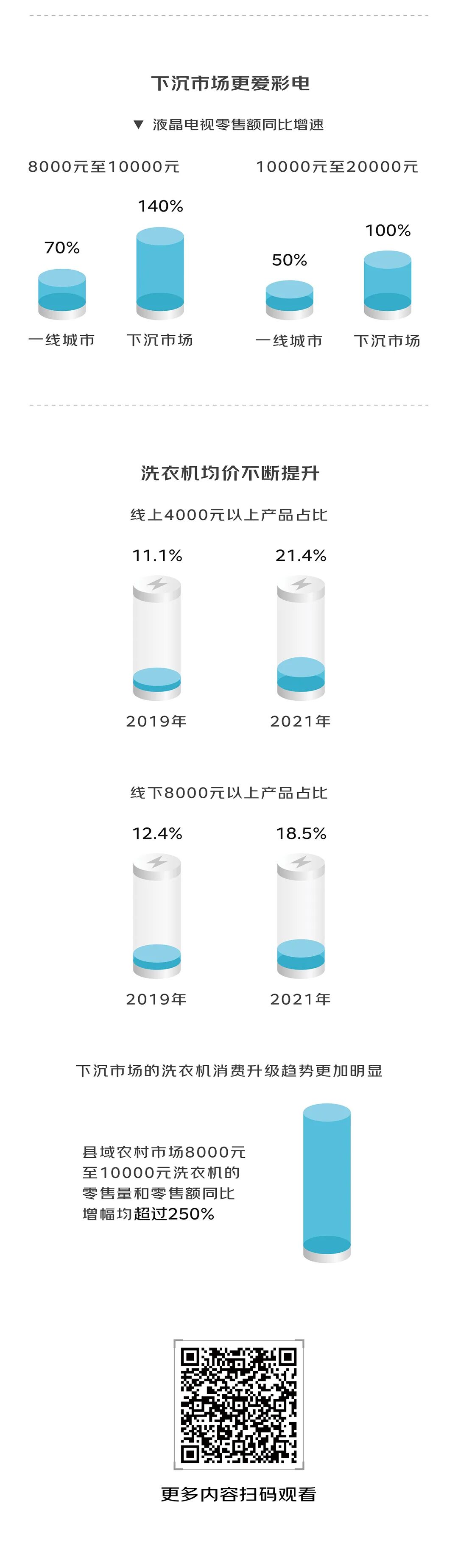 此外,下沉市场也已经成长为一股不可忽视的家电消费力量。目前,下沉市场的消费需求在零售基础设施持续完善后得到进一步释放,保持了较高的增速。