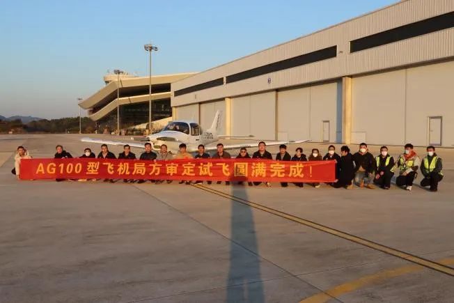 本次审定试飞按照AG100飞机型号检查核准书(TIA)要求,由中国民航适航审定中心、AG100审查组及通飞浙江研究院组成试飞团队,完成了AG100飞机性能、飞行特性、自动驾驶仪、空速和静压系统校准等22个试飞科目,共31架次25小时30分。