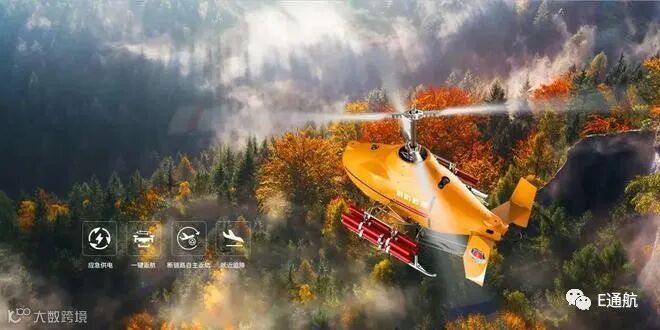 ▲ 无人直升机可执行火情巡逻和监测等多种任务。