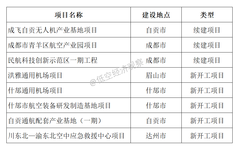 《2023年四川省重点项目名单》共列700个项目,包括续建项目464个、新开工项目236个。其中,低空经济相关项目8个。