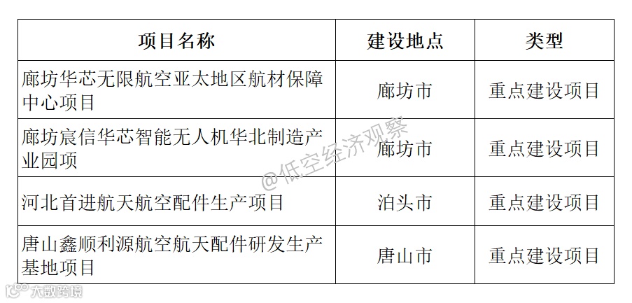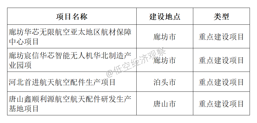 《河北省2023年省重点建设项目名单》共计507个项目,总投资1.32万亿元,年度预计投资2600.1亿元。其中,低空经济相关项目4个。