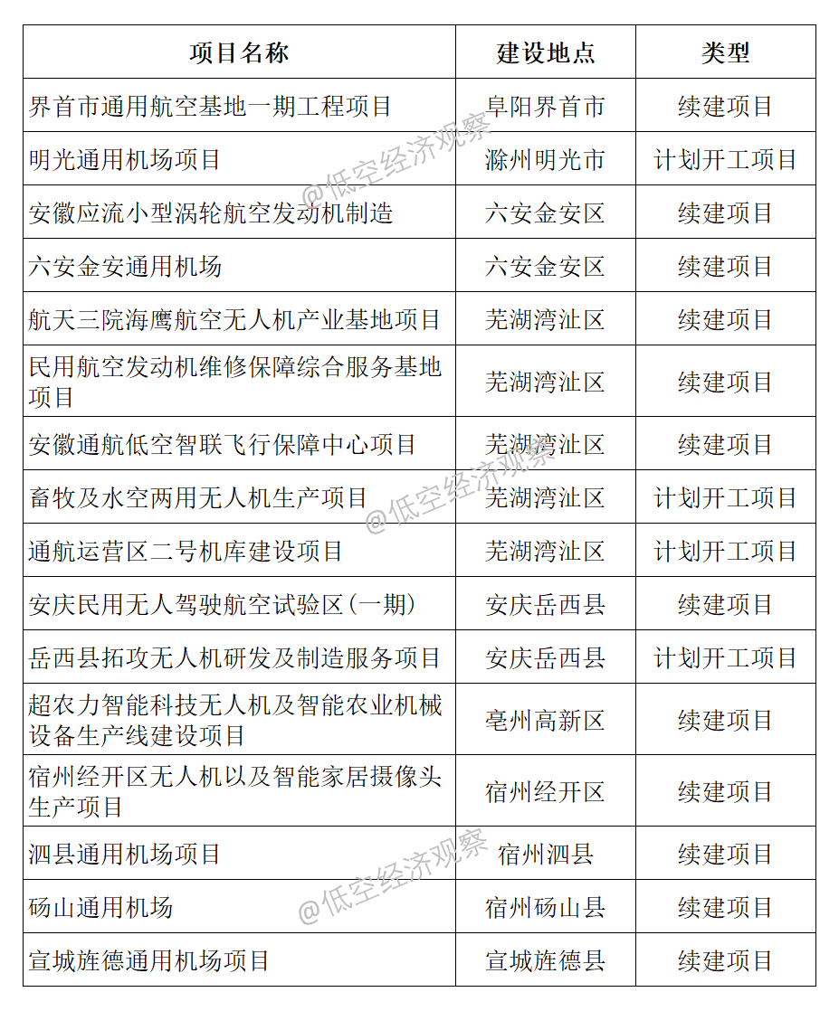 《安徽省2023年重大项目清单(第一批)》共包括9582个项目,总投资约3.7万亿元,年度计划投资3698.7亿元。其中,低空经济相关项目16个。