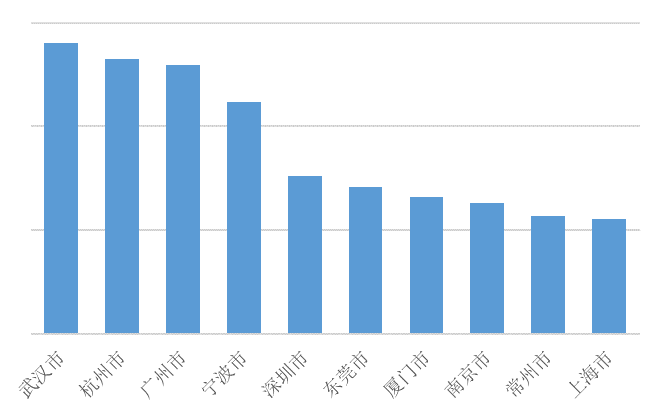 图 4. 跨境进口消费同比增速TOP10主要城市