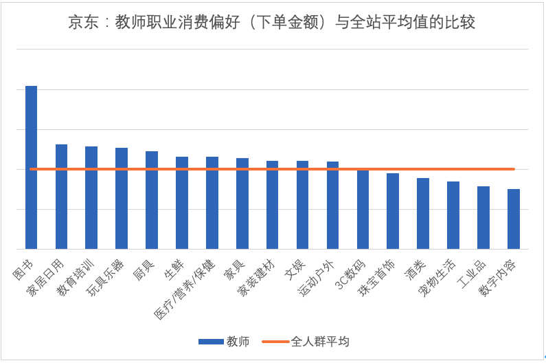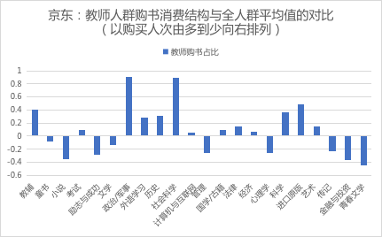 教师群体的图书消费偏好明显高于其它职业人群;而且教师购书类目显示其更加注重自身知识的学习和积累; -