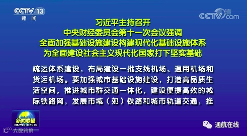4月26日,中共中央总书记、国家主席、中央军委主席、中央财经委员会主任习近平4月26日主持召开中央财经委员会第十一次会议,研究全面加强基础设施建设问题,研究党的十九大以来中央财经委员会会议决策部署落实情况。习近平强调,基础设施是经济社会发展的重要支撑,要统筹发展和安全,优化基础设施布局、结构、功能和发展模式,构建现代化基础设施体系,为全面建设社会主义现代化国家打下坚实基础。通用航空方面,会议指出,要加强交通、能源、水利等网络型基础设施建设,把联网、补网、强链作为建设的重点,着力提升网络效益。推进重大科技基础设施布局建设,加强综合交通枢纽及集疏运体系建设,布局建设一批支线机场、通用机场和货运机场。