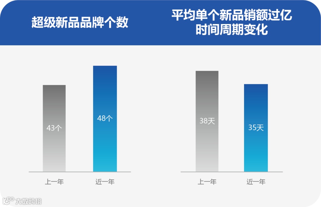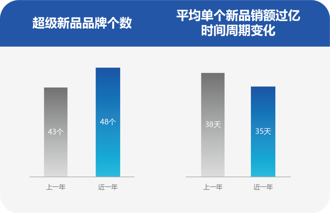(数据来源:京东⼩魔⽅、京东JC2M智能制造平台、益普索中国联合撰写发布《2021京东⼩魔⽅年中新品消费趋势报告》。上⼀年指2019年4⽉-2020年3⽉;近⼀年指2020年4⽉-2021年3⽉。超级新品品牌指:在过去⼀年中累计新品销售额过亿且销量同⽐增速⾼于该品类平均增速的品牌)