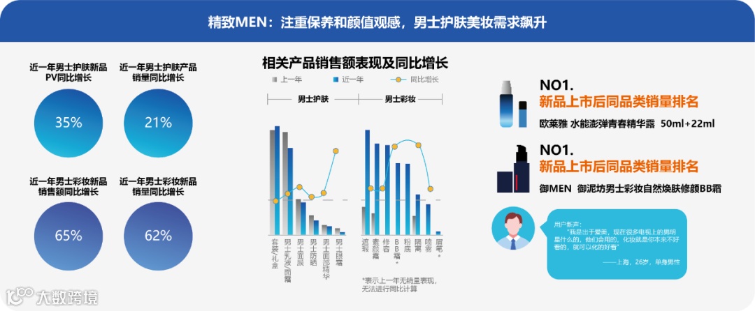 ⽽且美妆不仅仅是⼥性的专好,男生彩妆、定制产品等⼩众赛道在2021年出圈。得益于快速物流和各项优质服务,男性⽤户越来越倾向于在京东平台上购买美妆类新品。