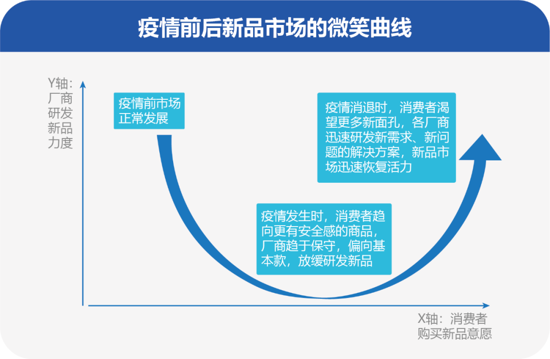 显然,“现任者”并没有最终获胜。即使在疫情之前,中国已是全球数字化程度最高的国家之一,疫情爆发后也是全球防控措施做得最好的国家之一。从数据看,疫情缓解后中国市场大量新需求迅速浮现,厂商恢复了推新的速度,其中包括可能被中断研发或投放的产品、以及大量应对新需求而出现的新产品;消费者对新品的响应变得空前活跃,社交圈拉动消费效应也在扩张。