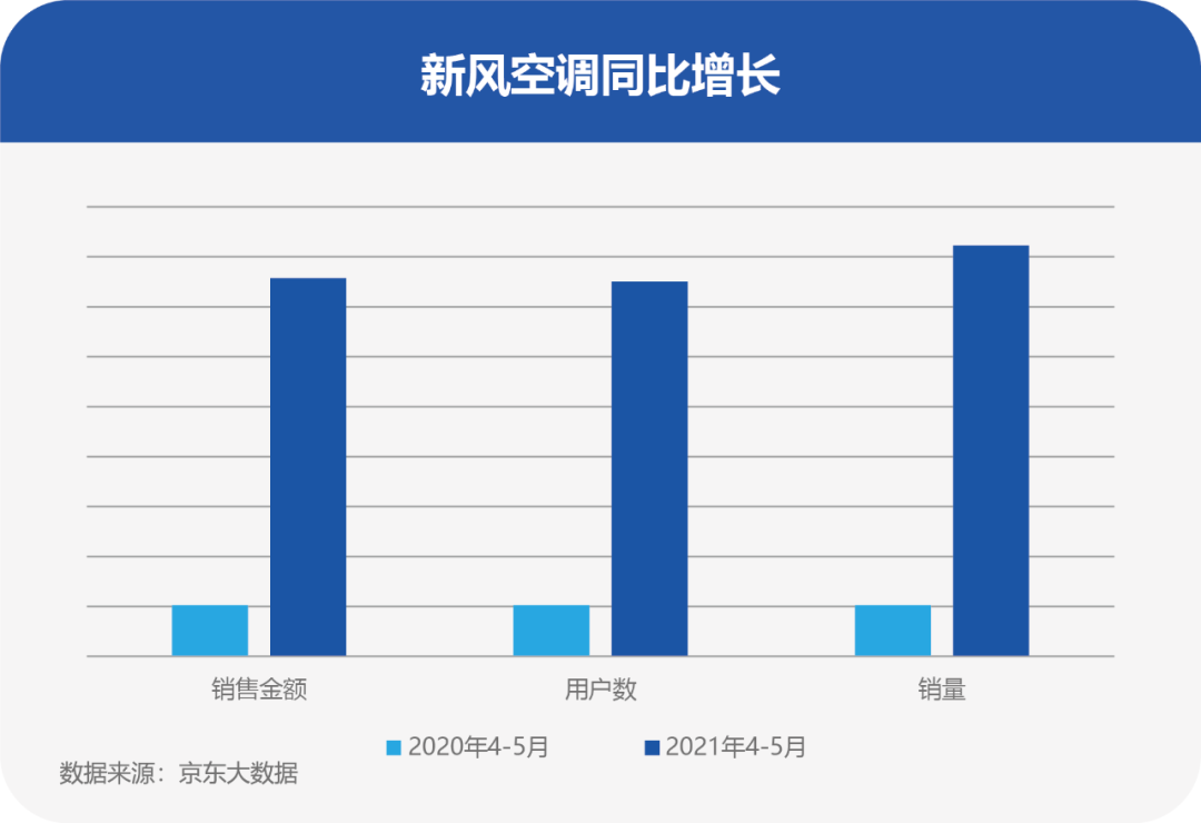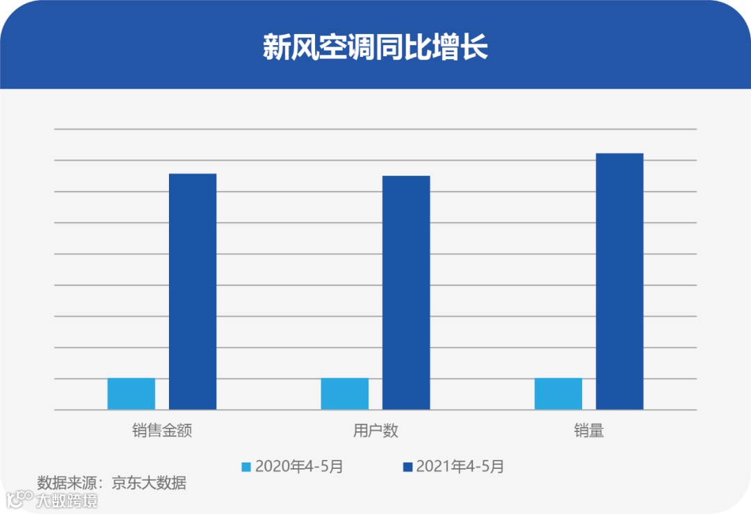 京东⼤数据显示,相比去年,今年4⽉以来新⻛空调的销售额和消费⼈数都有了⻓⾜的增⻓,同⽐都在6.5倍左右,⽽销量更是增⻓7.3倍以上。市场上不仅有美的、格⼒、海信等传统家电⼤⼚,也有⼩⽶等年轻品牌杀⼊,更有COLMO(美的旗下AI科技家电⾼端品牌)、卡萨帝(海尔旗下的⾼端家电品牌)等⾼端品牌异军突起,全⽅位满⾜不同⼈群的消费需求。