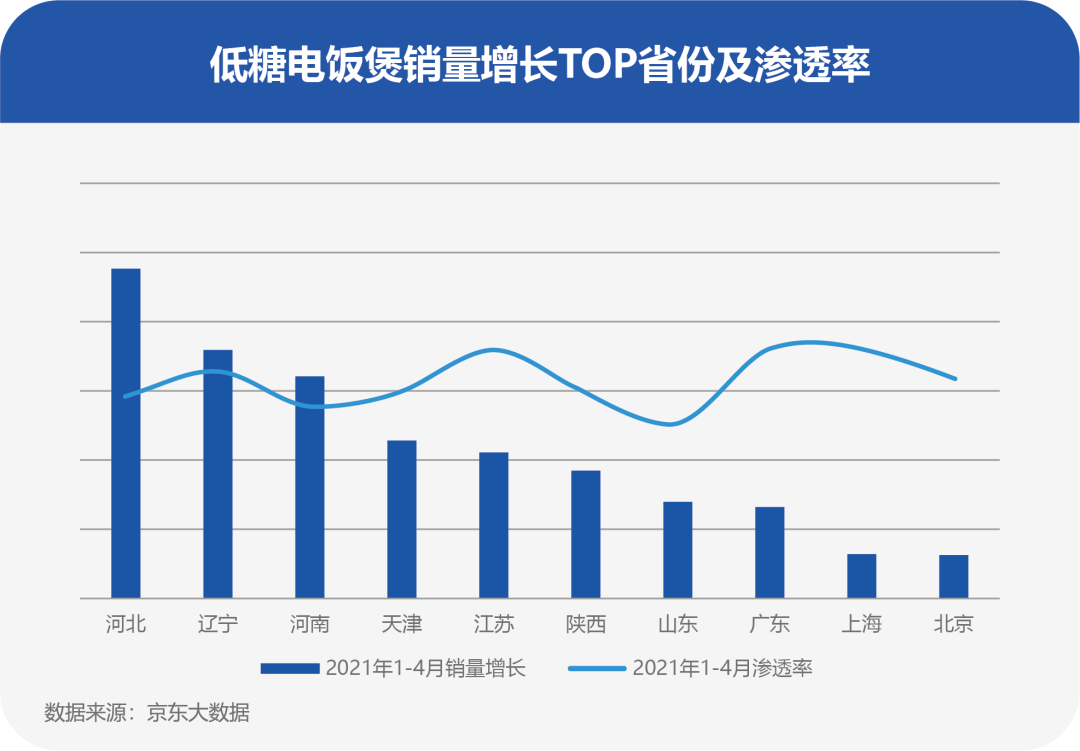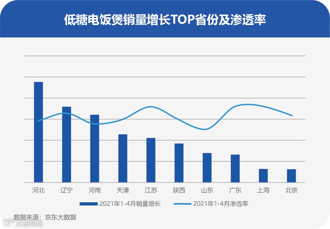 分地域来看,中低线城市销量增 超过高线,发达地区的渗透率更高,南方省市消费者相对来说更注重健康与养生,此外东北地区的渗透率普遍高于其它北方地区。这一方面与东北、南方人更习惯吃米有关,但也说明此产品的适用度并非仅限于局部区域。