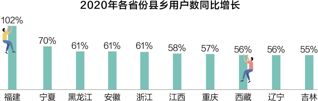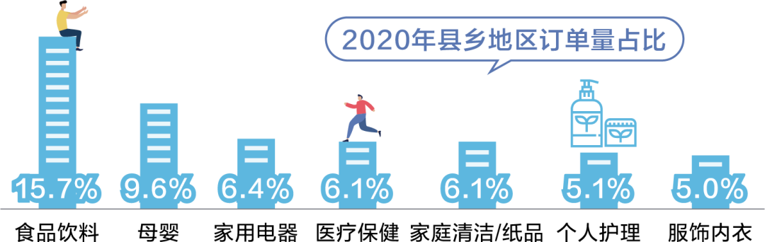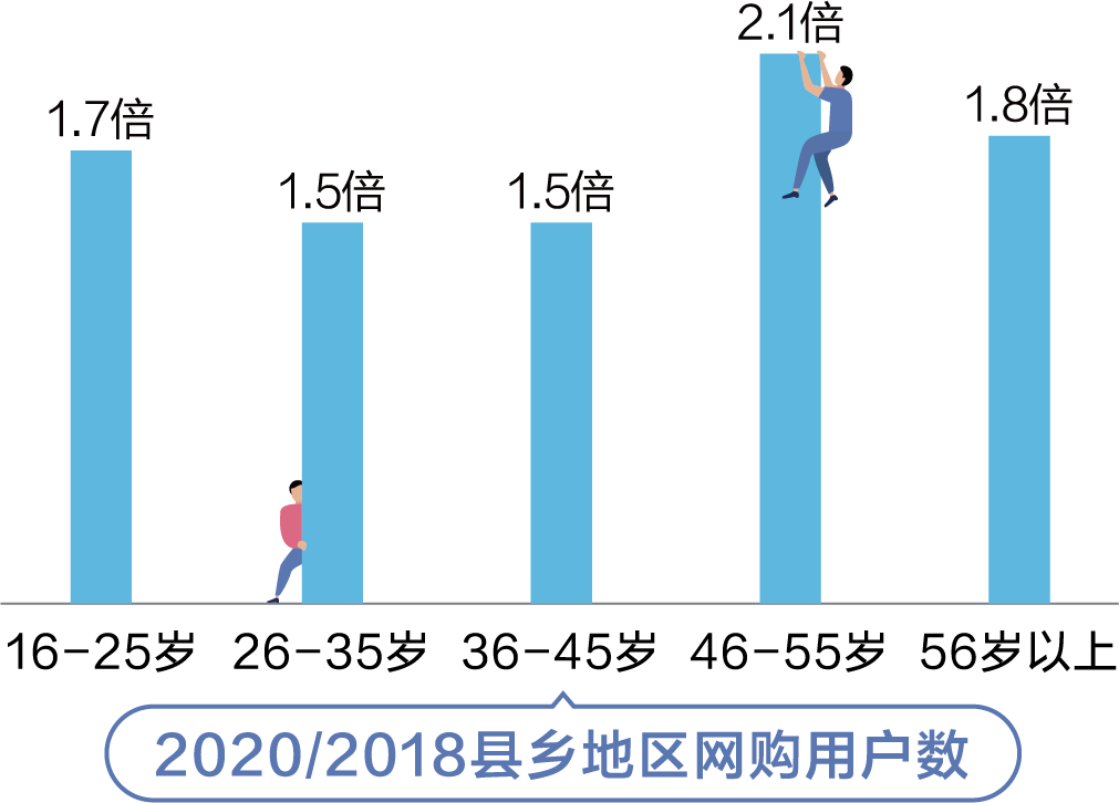 近年来,县乡地区的网络消费蓬勃发展,2020年县乡地区的网购用户数增长更是超过往年。京东2020年财报显示:新增的1.1亿活跃用户中超过80%来自下沉市场。