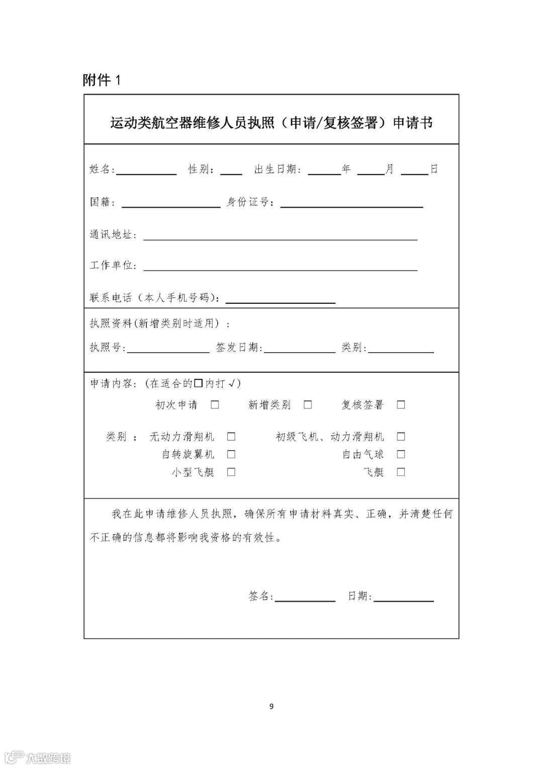 附件:1.运动类航空器维修人员执照(申请/复核签署)