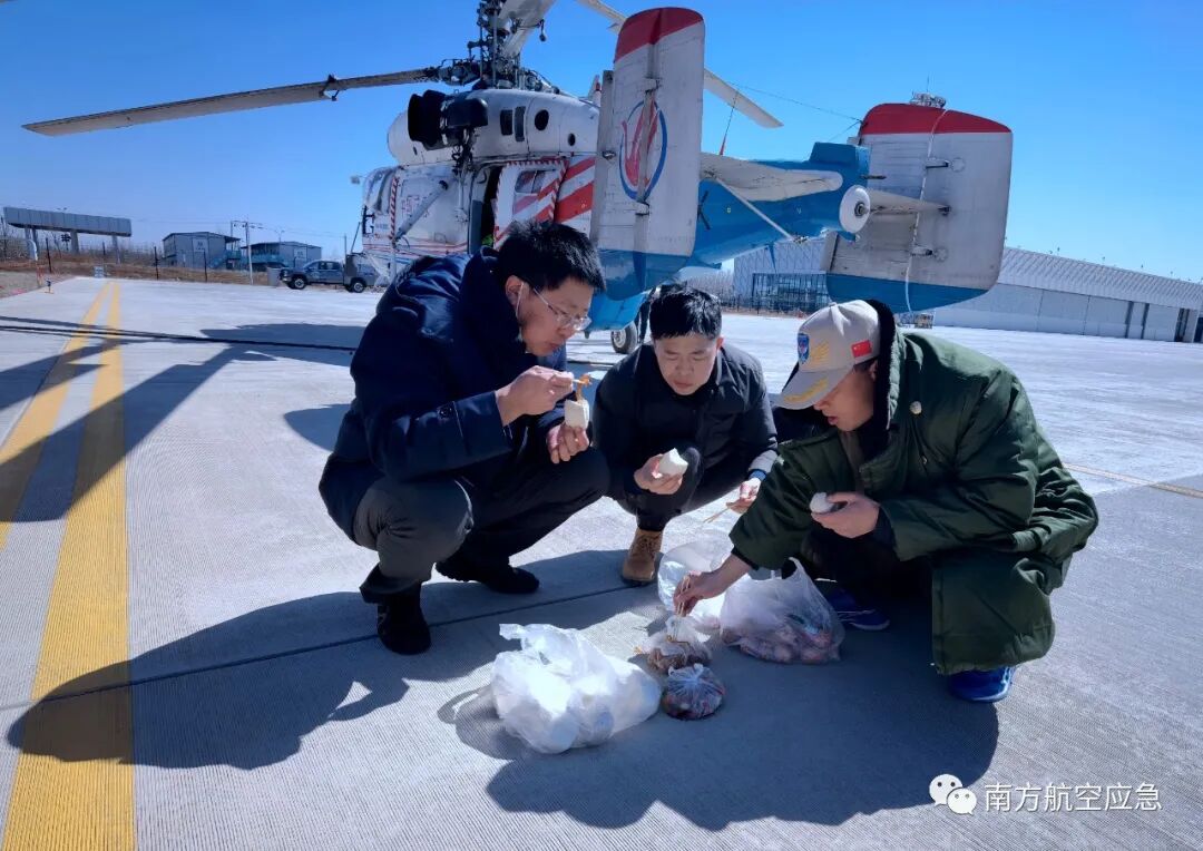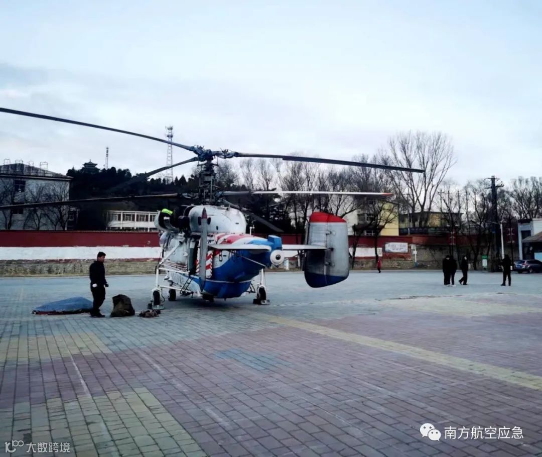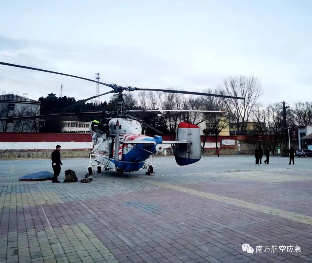 11日,因航路大雾及气温骤降,机场能见度不到1000米,不具备飞行条件。12日早晨6时40分,直升机顺利从烟台基地栖霞机场起飞,经停莱芜雪野、济南商河、河北石家庄等机场,空中航程约1000千米,大家争分夺秒,众志成城,克服复杂天气条件,于下午17时57分安全调抵涞源县临时起降点。