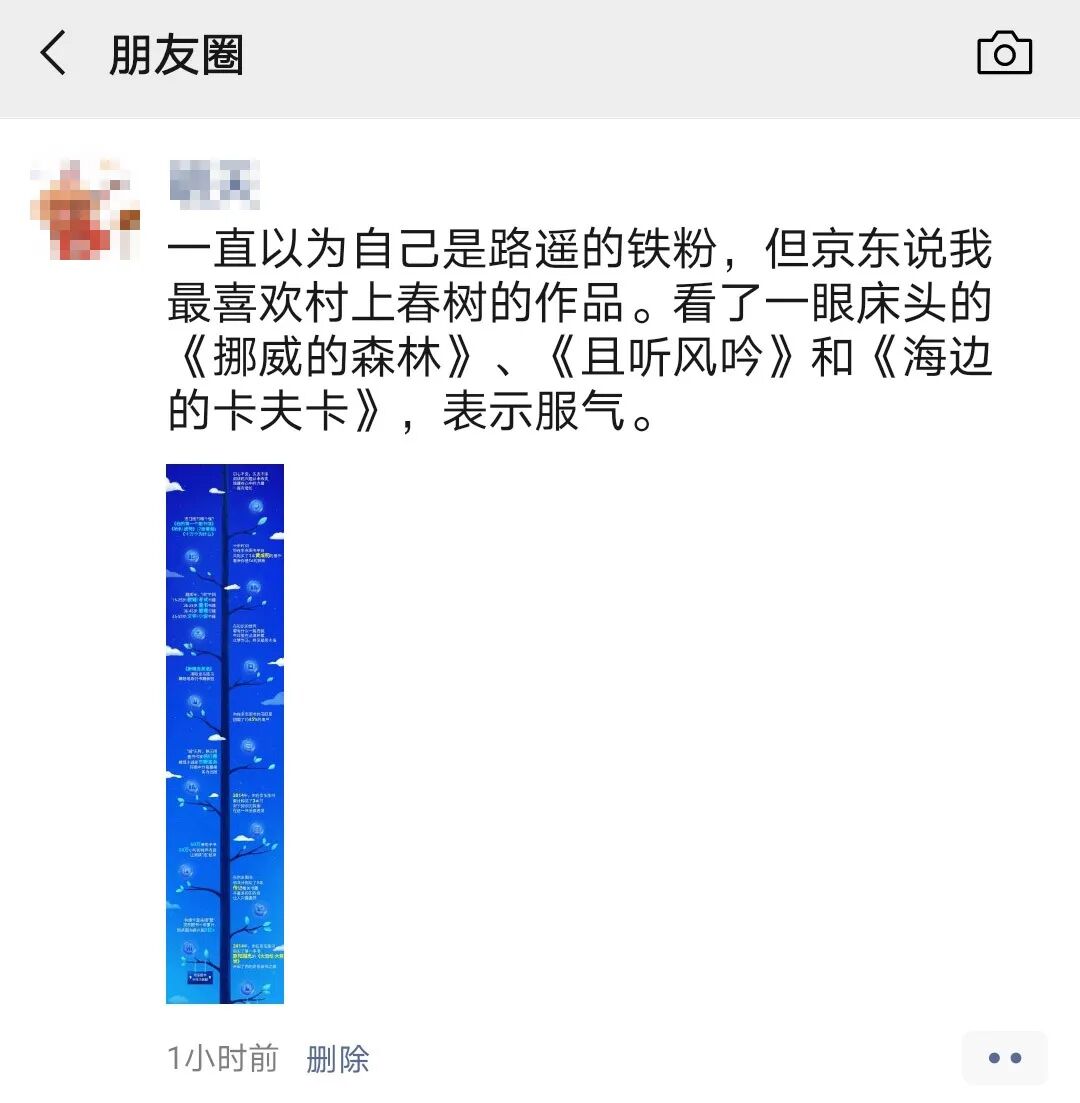 网友B:“本来以为我是路遥的铁粉,但京东图书说村上春树才是我的本命。”