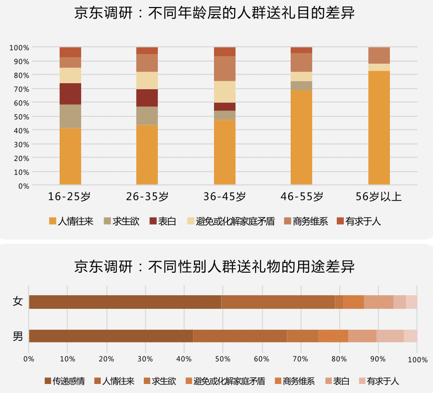 而Z世代购买礼物计划性显然比前辈们要强一些,他们同时是出于“求生欲”而送礼占比最高的人群,看来年轻人也不容易,不过好歹事先会做好计划。