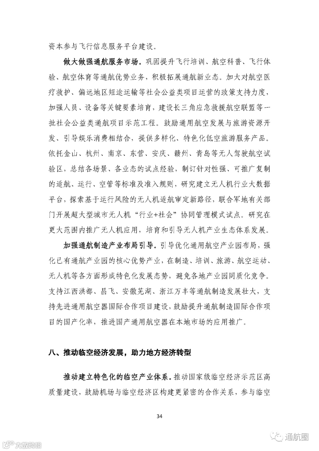 4.加强通航制造产业布局引导。引导优化通用航空产业园布局,强 化已有通航产业园的核心优势产业,在制造、培训、旅游、航空运动、 无人机等各方面形成特色化发展态势,避免各地产业园同质化竞争。支持江西洪都、昌飞、安徽芜湖、浙江万丰等通航制造发展壮大,支持先进通用航空器国际合作项目建设,鼓励提升通航制造国际合作项 目的国产化率,推进国产通用航空器在本地市场的应用推广。