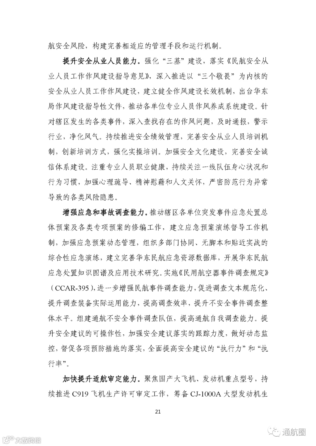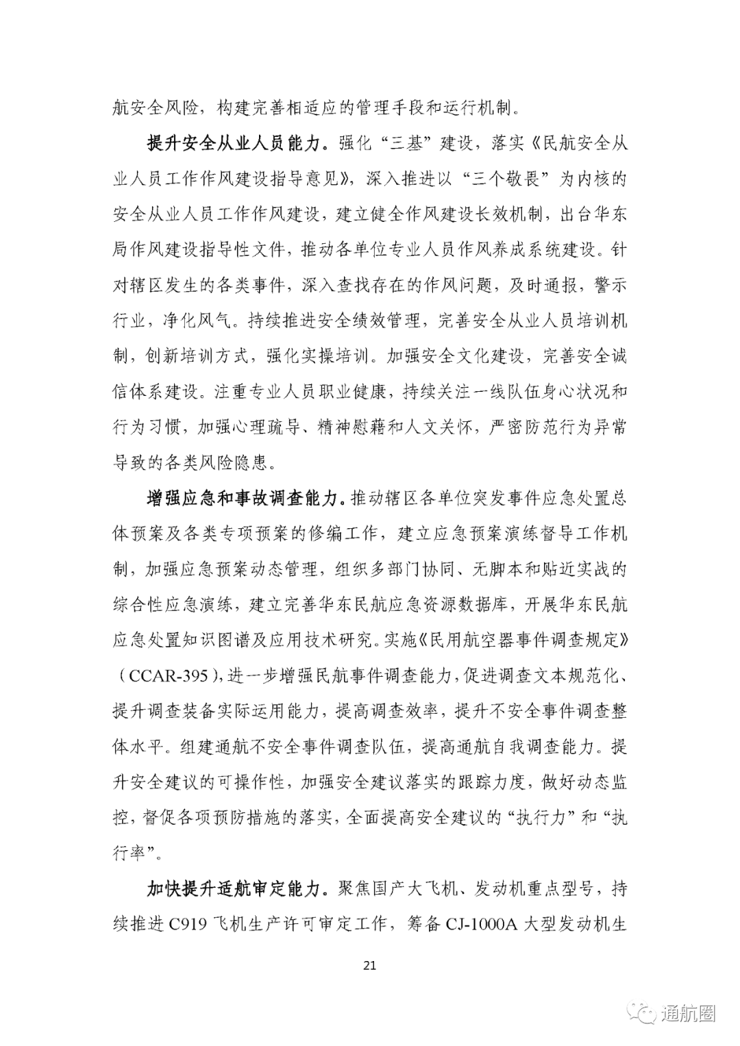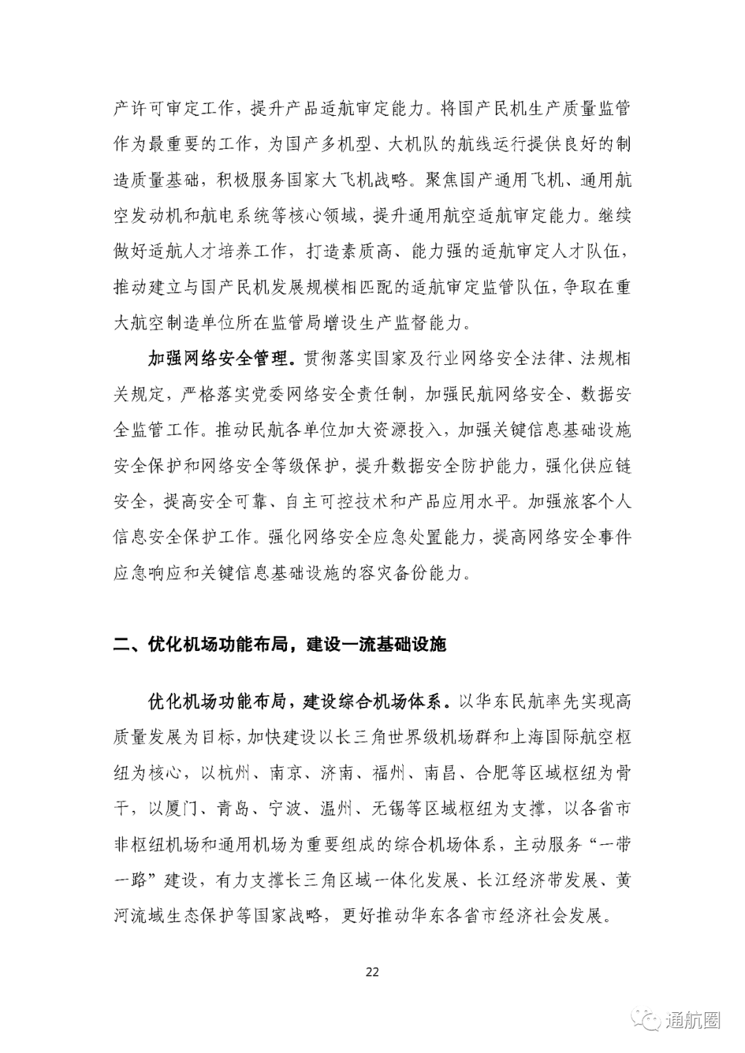 对此,十四五时期华东民航将坚持系统观念,推进客货、国际国内、干线支线、运输与通用航空的协调发展,在十四五末率先实现民航高质量发,在控制和减少通用航空重大事故的同时实现通用航空飞行小时实现倍增,达到30 万小时,成为我国民航的强劲活跃增长极。此外,在重点任务上,还将加快提升适航审定能力,聚焦国产通用飞机、通用航空发动机和航电系统等核心领域,提升通用航空适航审定能力。推进智慧空管建设,推进通用航空北斗机载设备装 备国产飞机。