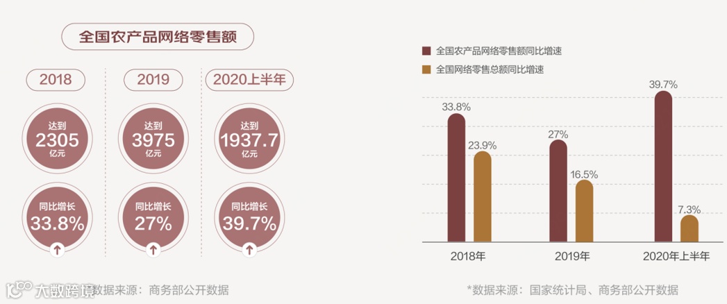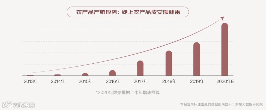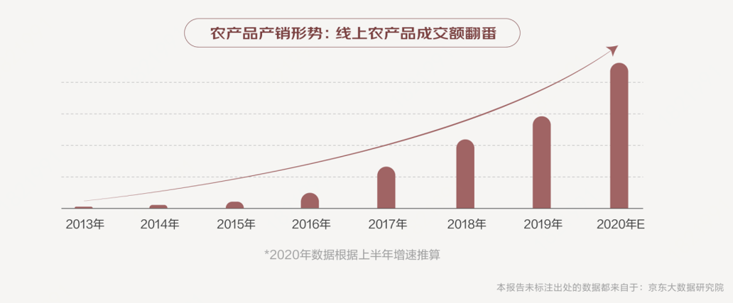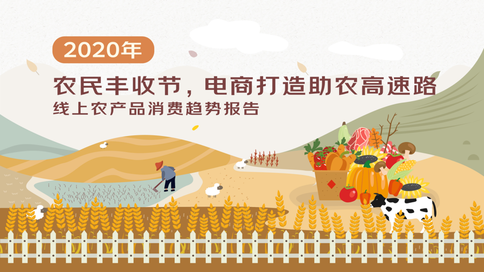 春华秋实,稻谷飘香。秋分时节,我国迎来了第三个“中国农民丰收节”。9月22日,京东大数据研究院发布《电商打造助农高速路,2020线上农产品消费趋势报告》,报告显示:2020上半年,电商农产品成交额翻番,同比增长超过了104%;农产品的省外市场份额提高,地域农产品通过电商走向全国;通过电商打造的“助农”高速路,中西部省份农产品销往北上广等发达省份;地标农产品热销,贵州、海南、青海线上农产品销售增长高。