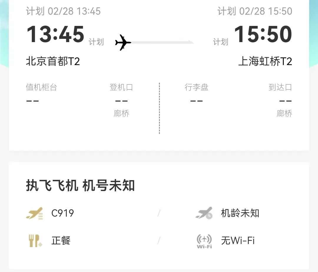 1月30日消息,有媒体报道称,已交付东航的国产大飞机C919, 最早将于2月28日执飞商业航班。