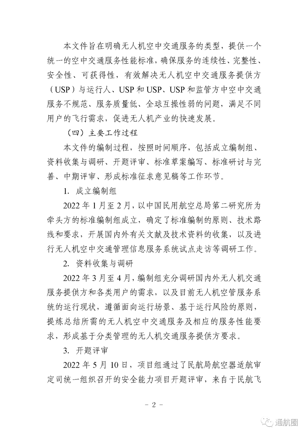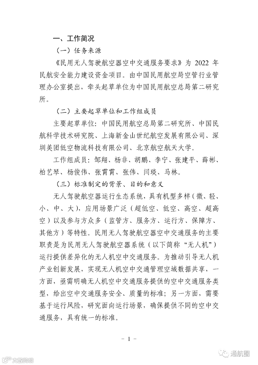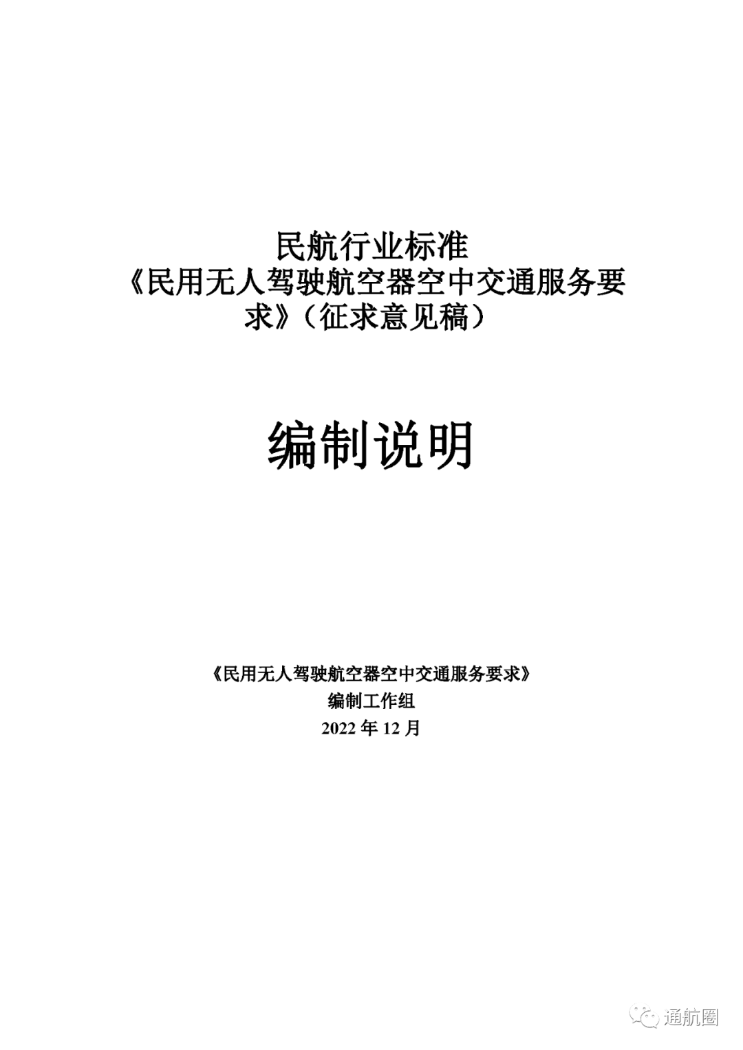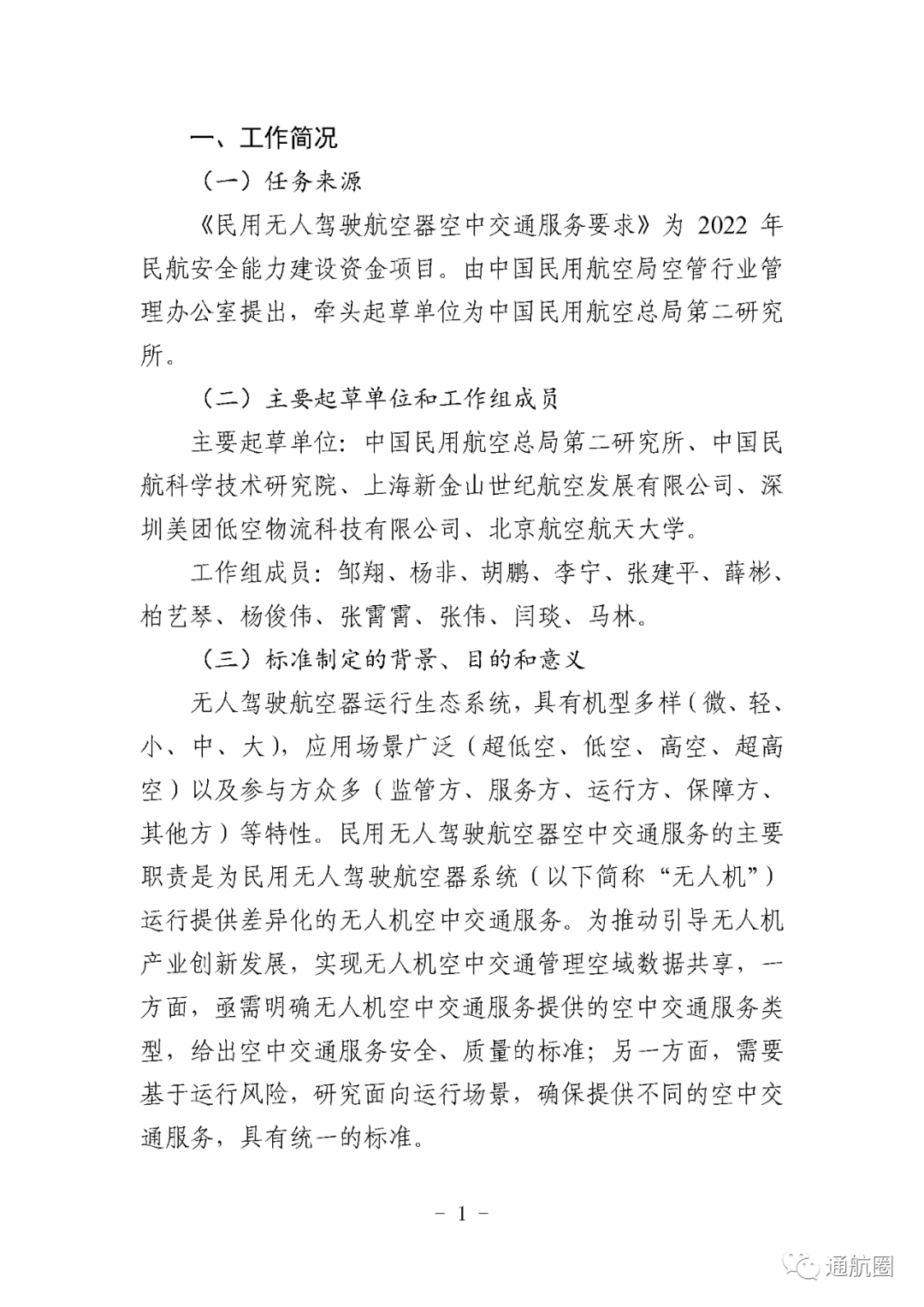 一、《民用无人驾驶航空器空中交通服务要求》(征求意见稿)编制说明