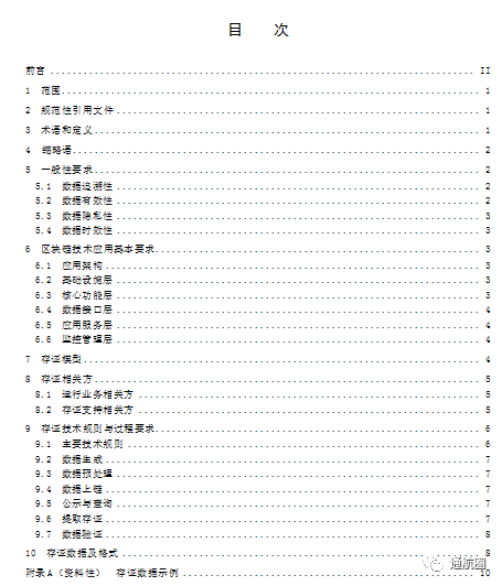 《基于区块链的民用无人机驾驶航空器飞行数据存证技术要求》的标准主要内容包括前言、范围、规范性引用文件、术语和定义、缩略语、一般性要求、区块链技术应用基本要求、存证模型、存证相关方、存证技术规则与过程求、存证数据及格式、附录A(资料性)存证数据示例等。