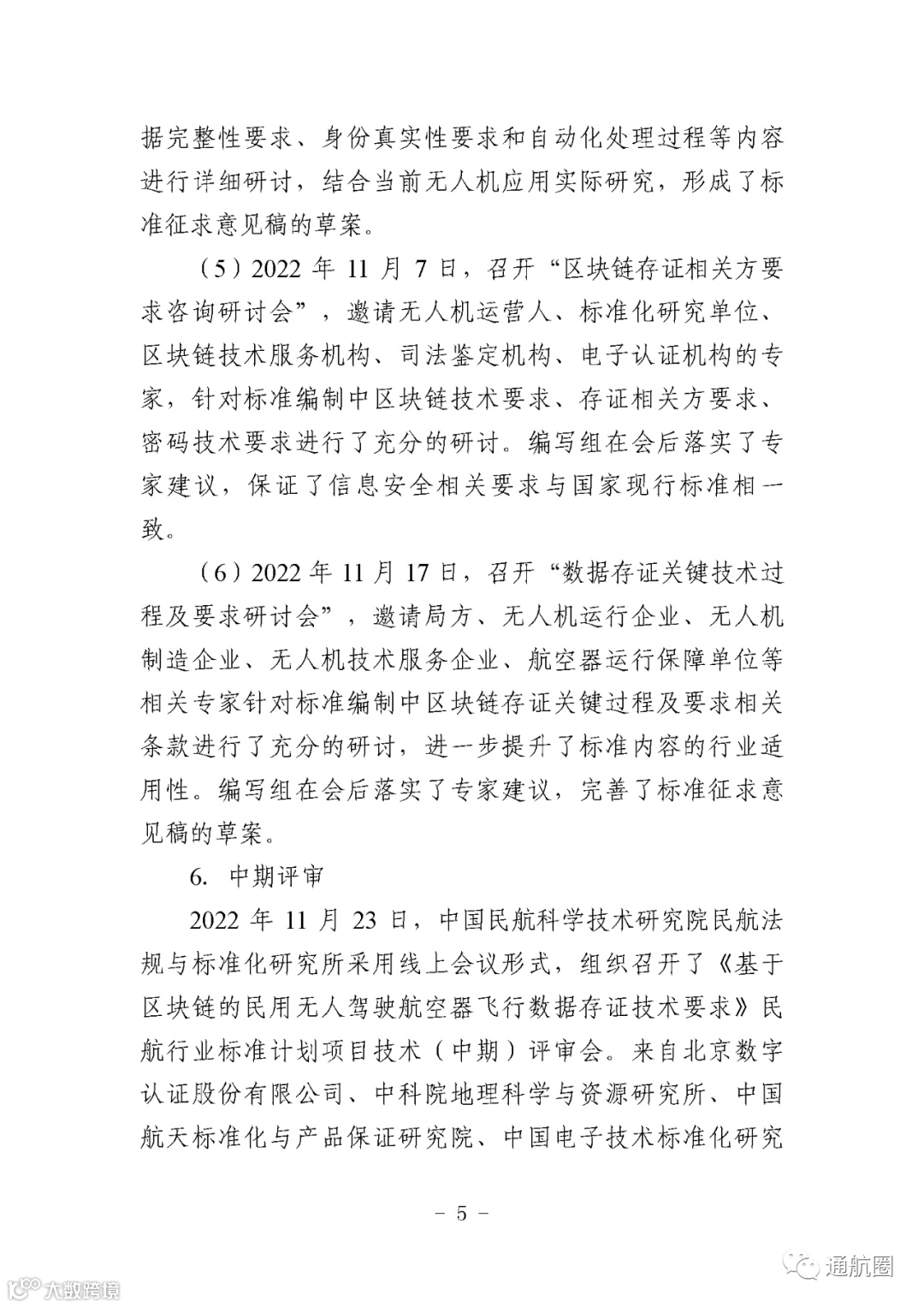 据介绍,《基于区块链的民用无人机驾驶航空器飞行数据存证技术要求》是2022年民航安全能力建设资金项目。由中国民用航空局飞行标准司提出,牵头起草单位为中国民航科学技术研究院,主要起草单位为中国民用航空局飞行标准司、中国民航科学技术研究院、深圳美团低空物流科技有限公司、上海新金山世纪航空发展有限公司、航空工业第一飞机设计研究院,工作组成员有曾鸣、刘瑞、陈新锋、王长金、郑志刚、张雷、秦永辉、邹莹芝、何静、唐伟宾、柏艺琴、刘艳思、郑宇、胥飞飞、杨海涛等。