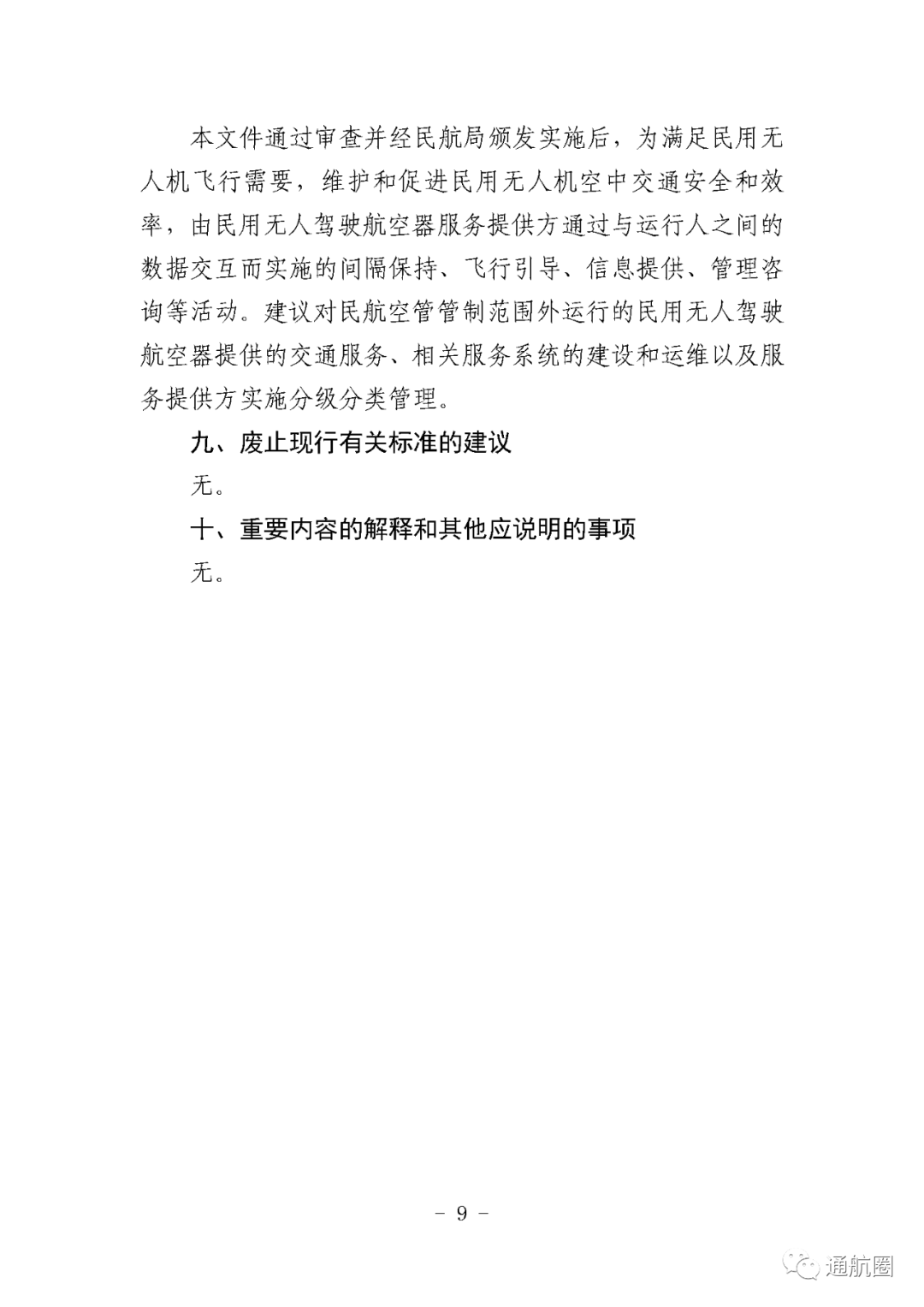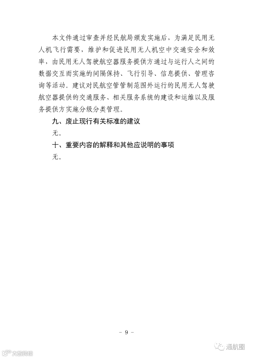 一、民用无人驾驶航空器空中交通服务要求(征求意见稿)